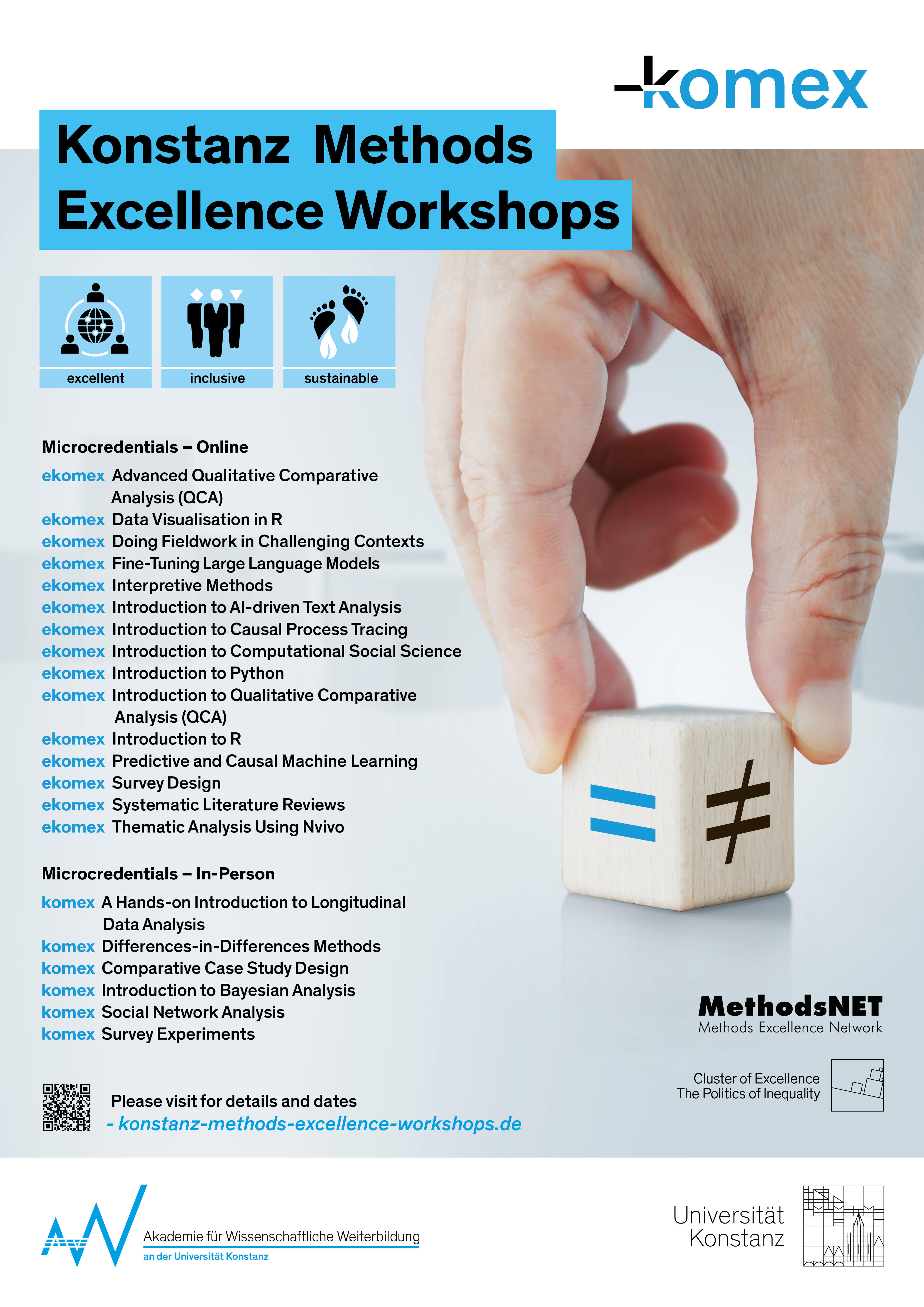 https://afww.uni-konstanz.de/en/komex/konstanz-methods-excellence-workshops https://afww.uni-konstanz.de/en/komex/konstanz-methods-excellence-workshops