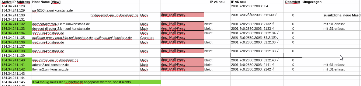 dovecot-director-1, dovecot-director-2, wie auch adenin2 und thymin2 habe ich in IPv6 mit dem Namen erfasst, so dass dies auch verhältnismäßig einfach angepasst werden können.